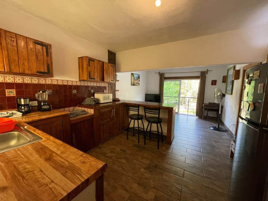 Rodeado de hermosas montañas y a la orilla del río Cuale con maravillosas vistas y abundante vegetación. Ideal para unos días de descanso . Locación ideal para el avistamiento de aves. Hay transporte publico que te lleva al centro. Tenemos buen internet satelital. Ofrecemos servicio de desayunos por un costo extra y también tenemos descuento para las atracciones cercanas a nuestra ubicación como las tirolesas y paseos a caballo. Suite totalmente independiente con cama extra grande, AIRE ACONDICIONADO, cocina bien equipada con utensilios, con su refrigerador grande, estufa eléctrica de 2 quemadores, vasos, platos, sartenes, cafetera, tostador, horno de microondas, Smart Tv con Netflix, sala de estar, escritorio para home office, excelente internet satelital, balcón con vista al río y la montaña, balcón con vista a la calle, baño extra grande con tina, regadera con espacio para 2 personas, 2 lavabos, diferentes tipos de iluminación en el baño, plancha para ropa y ventilador de piso. Nuestro edificio Airbnb está a 10 metros del río, puedes nadar, es de libre acceso, tenemos sillas de descanso en el jardín, ideal para leer un libro o simplemente relajarte. Nuestra ubicación es ideal para realizar agradables caminatas, disfrutar del río y de sus bonitas cascadas en temporada, ademas de que es una zona protegida de aves. Estamos disponibles para nuestros huéspedes si nos necesitan pero a la vez nos gusta darles su espacio. El barrio es muy tranquilo y seguro, hay un par de tiendas de conveniencia a un lado de la casa donde puedes encontrar snacks, bebidas frías y cerveza, también hay una carnicería cerca. Si quieres frutas o verduras, sugerimos parar en un supermercado antes de venir a nuestra casa, ya que las frutas y verduras frescas son limitadas en esta zona. Nosotros contamos con servicio de desayunos por un costo extra y si el huésped lo solicita se le puede dar servicio de comida también. Hay 3 restaurantes cerca de nosotros: El Río BBQ, Moro Paraiso & los Coapinoles. Aquí cerca se encuentra el parque de atracciones Canopy River con tours de tirolesa, Atv (4x4), paseos a caballo, en los cuales nosotros tenemos venta de boletos con 20% de descuento. El transporte público empieza a las 6:20 am y termina a las 9pm, cobra $10 pesos y va directo al centro. Es la ruta: R-04 Paso Ancho, pasa cada 25 minutos y lo puedes tomar exactamente en la puerta de la casa. También hay servicio de Uber las 24 horas del día. A partir del 24 de diciembre del 2022 tendremos clases de Kundalini Yoga por un costo extra en nuestra terraza, así como también sesiones de craneo sacral y masajes relajantes.